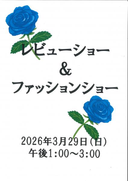 3月29日(日)午後1:00~4:00で【レビューショー&ファッションショー楽しもう】を開催します。イベントにゲスト出演してくださる方、特に音楽系やダンス系などで盛り上げて下さる方を大募集です。