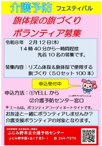 旗体操の旗づくりボランティア募集中です!2月12日(木)14時40分~1時間程度