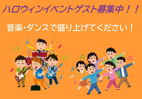 10月30日(木)午後1:00~4:00で【ハロウィンを楽しもう】を開催します。イベントにゲスト出演してくださる方、特に音楽系やダンス系などで盛り上げて下さる方を大募集です。