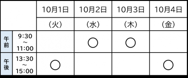 募集人数:各枠1~2名 ※下記日程で【1時間以上】できる方
