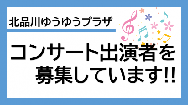 北品川ゆうゆうプラザでは、コンサートを行なってくれる方を募集しています!!