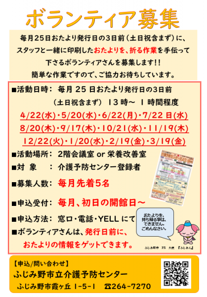 令和8年4月22日(水)13時~一時間程度毎月25日発行している「介護予防センターだより」を