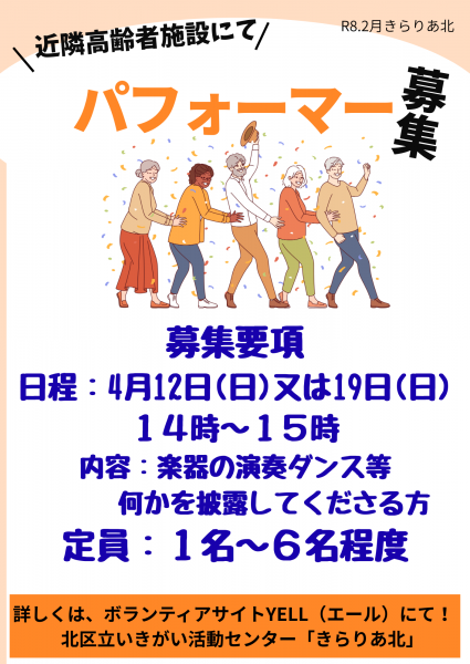 パフォーマンスを披露してくださる方々を募集中です!!
